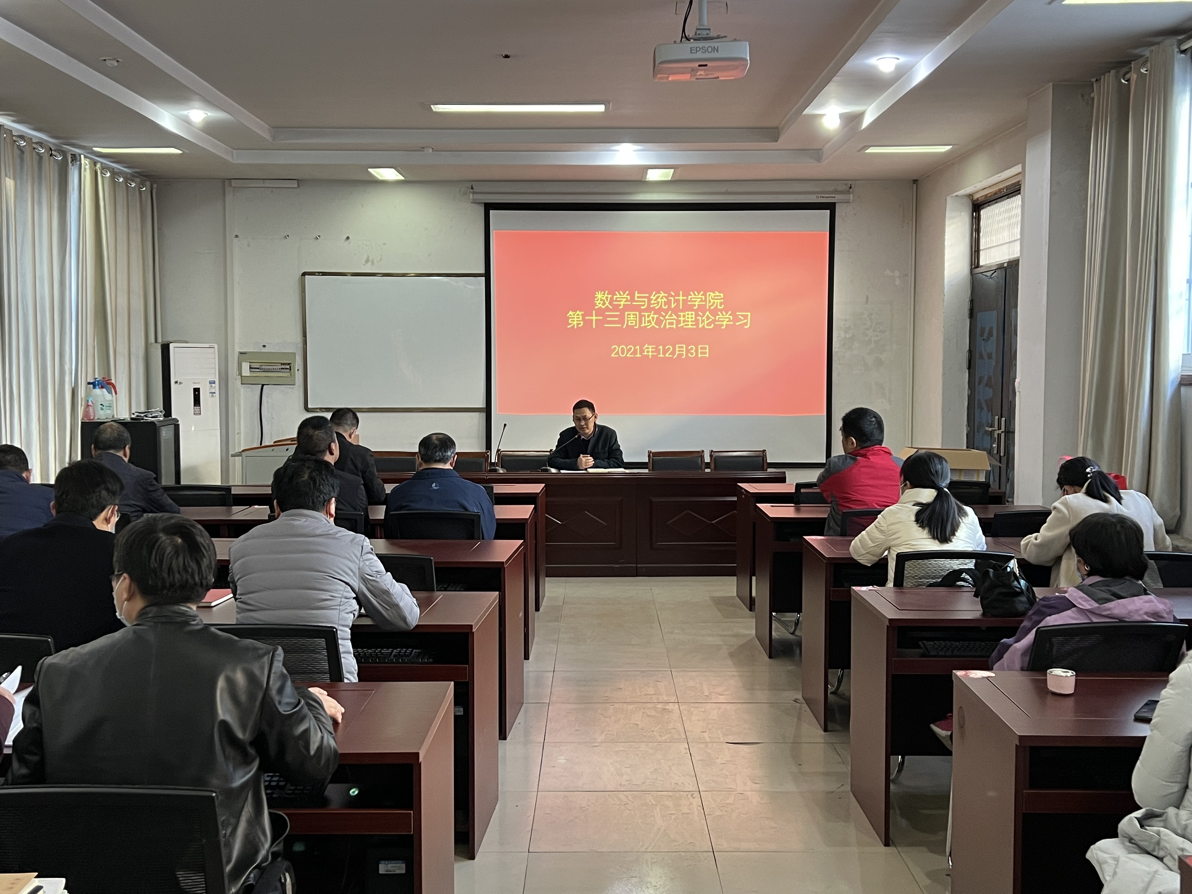 2021年12月3日,金年会jinnianhuicom在数学楼会议室召开第十三周政治理论学习会议,学院领导班子、全体教职工参加了此次会议,会议由张斐然院长主持。