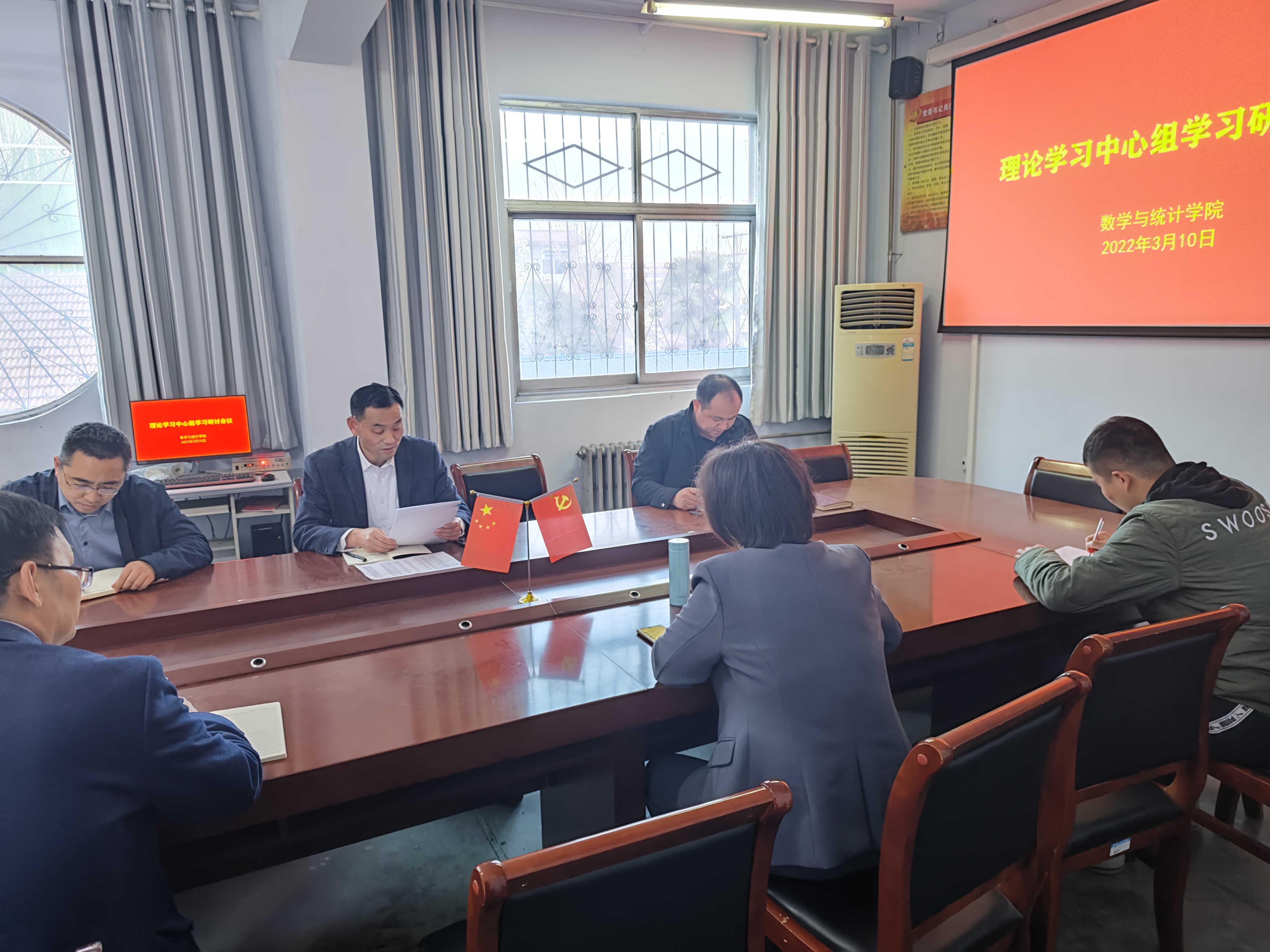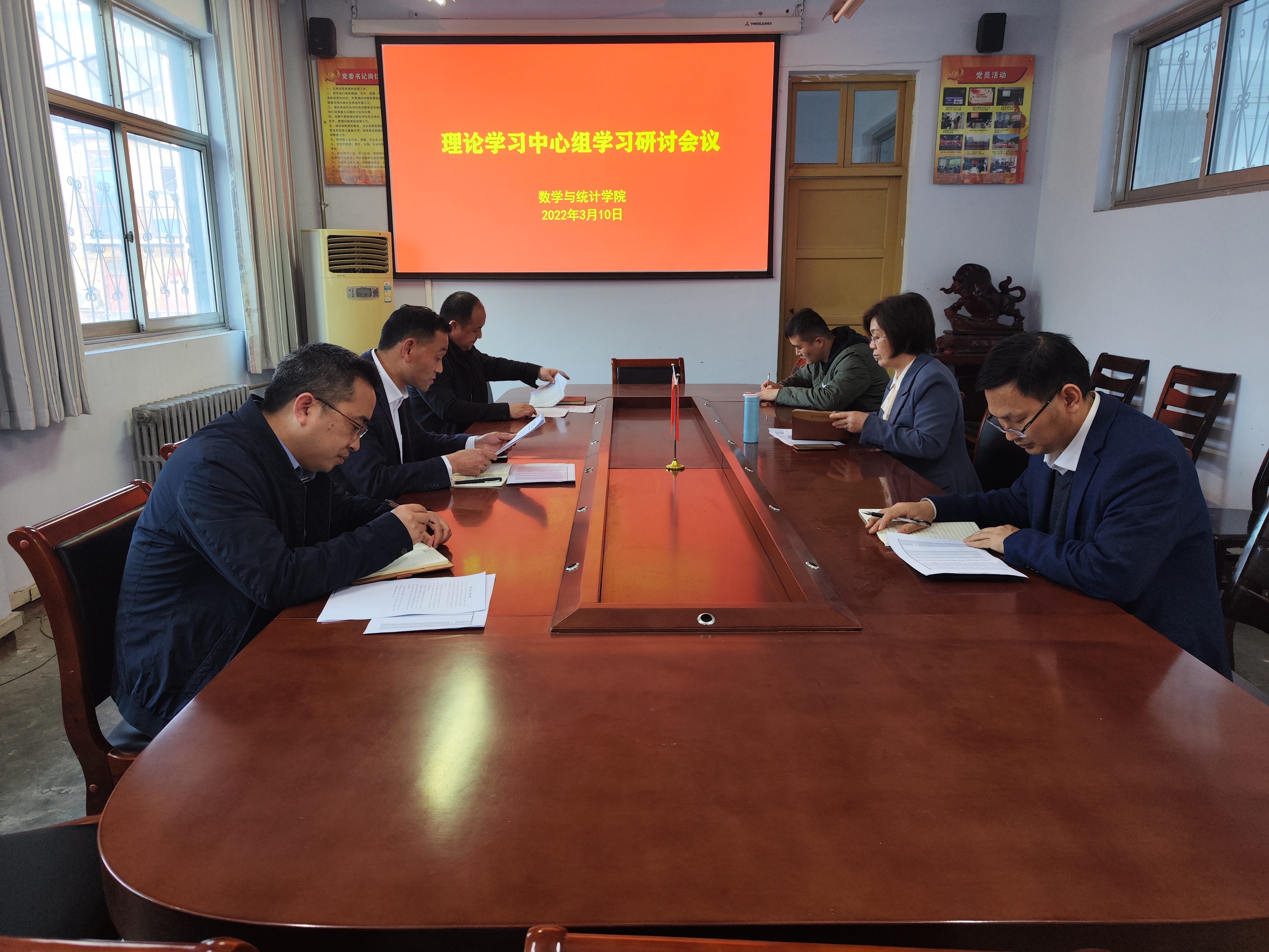 2022年3月10日,金年会jinnianhuicom在数学楼党员活动室召开党委理论学习中心组会议,学院党委委员一起参加了此次会议,会议由党委书记孟学超主持。