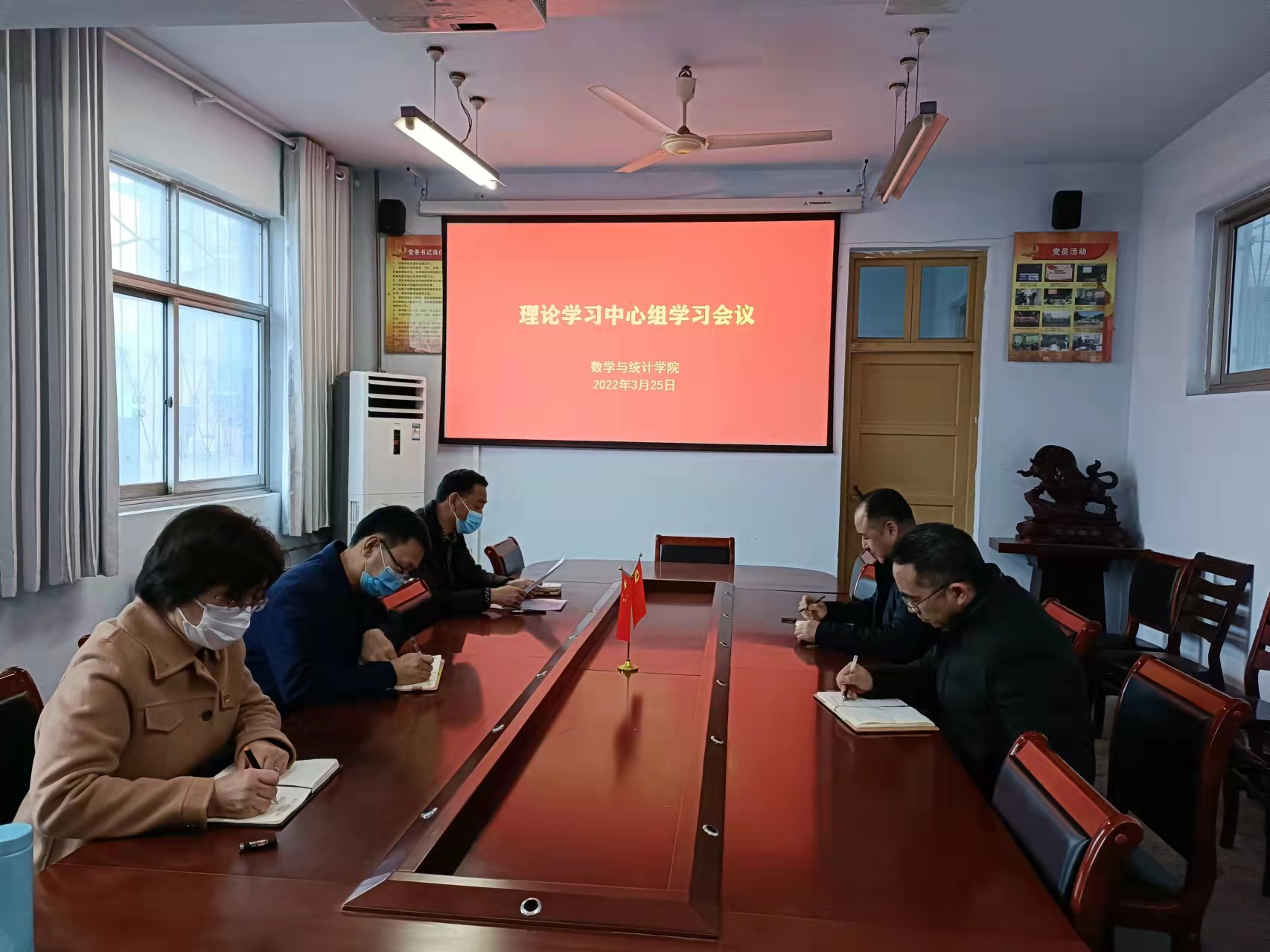 2022年3月25日,金年会jinnianhuicom在数学楼党员活动室召开党委理论学习中心组会议,学院党委委员参加了此次会议,会议由党委书记孟学超主持。