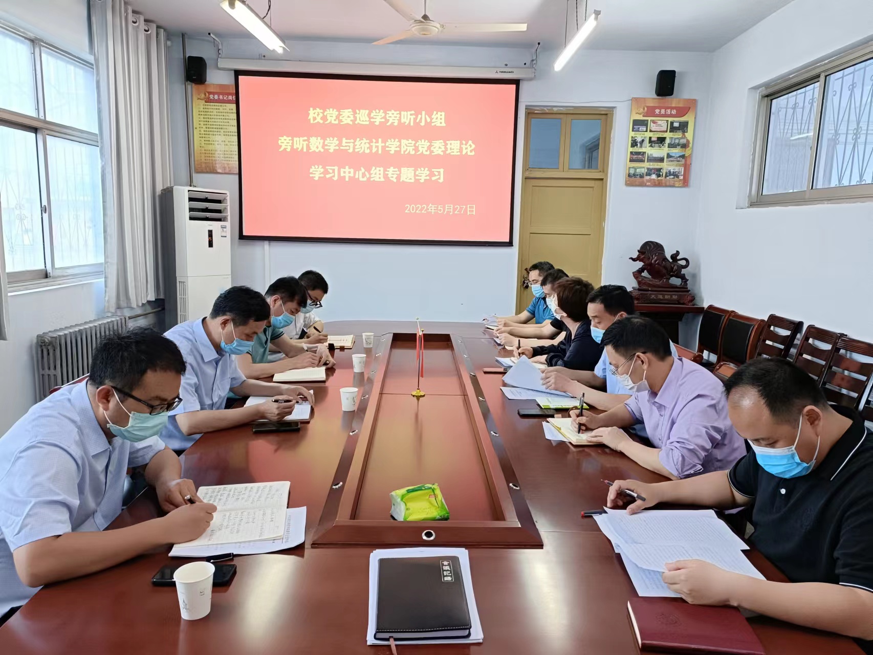2022年5月28日,金年会jinnianhuicom在数学楼党员活动室召开党委理论学习中心组会议,学院党委委员、学校巡学旁听第五组成员李林、于庆江、互听人员李海涛、朱震杰参加了此次会议,会议由学院党委书记孟学超主持。