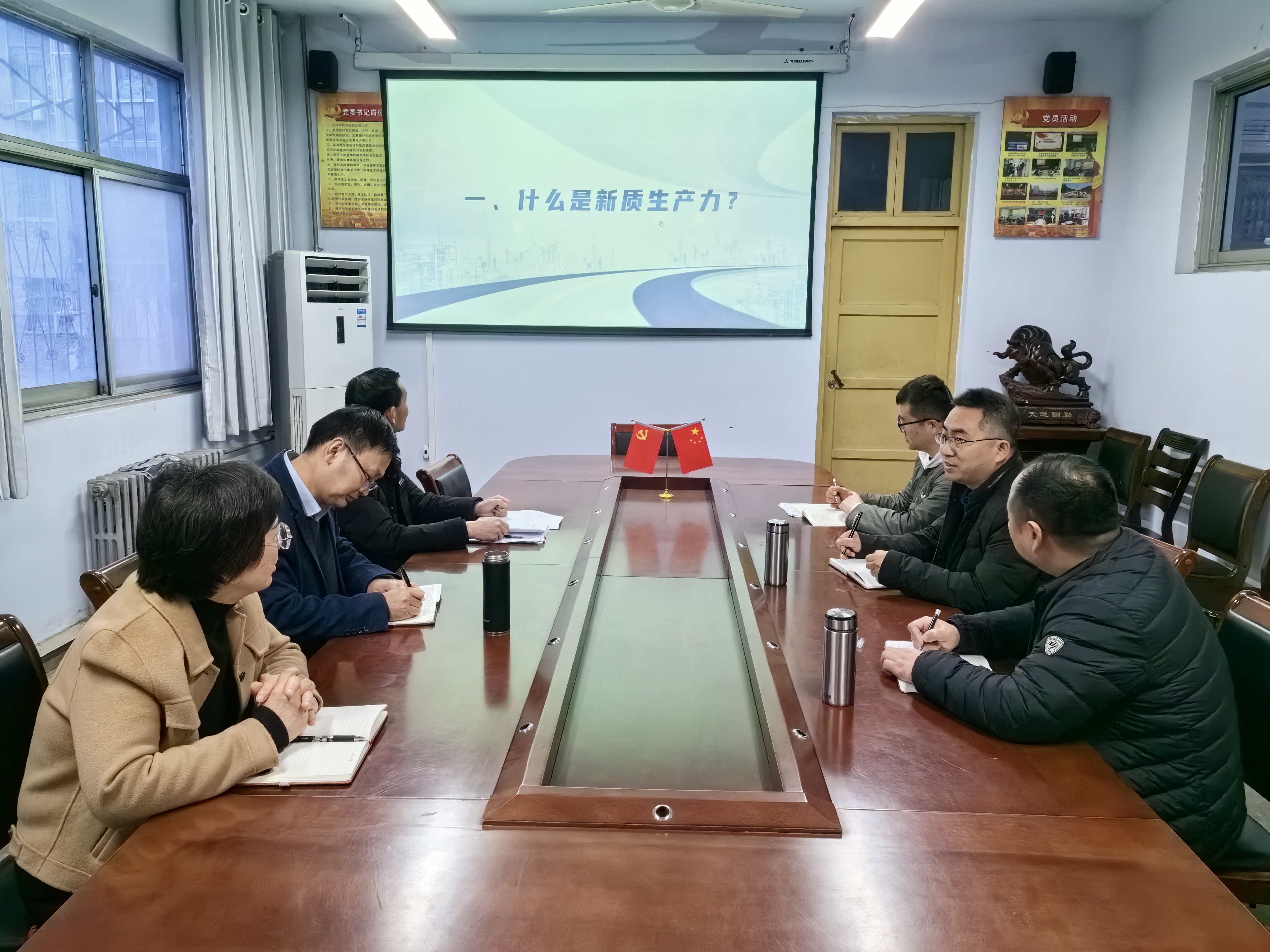 会上,全体与会成员观看了新质生产力的解读和2024年政府工作报告中有关教育部分的视频学习资料。学院党委书记孟学超重点领学了习近平总书记关于“加快发展新质生产力,扎实推进高质量发展”重要论述、习近平总书记在新时代推动中部地区崛起座谈会上的重要讲话,与会人员结合理论学习内容与实际工作进行研讨交流。