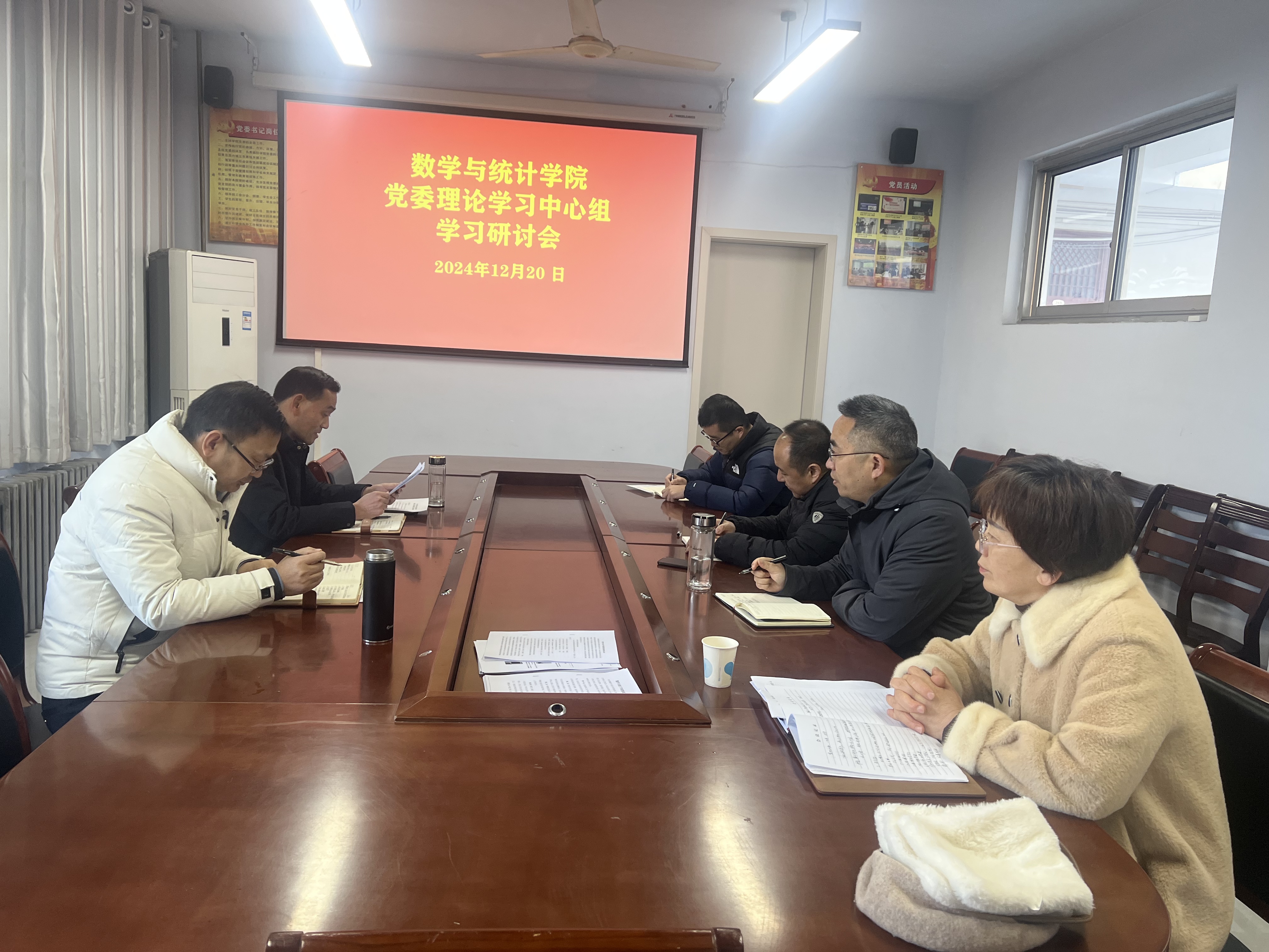 2024年12月20日,金年会jinnianhuicom在数学楼204党建活动室召开党委理论学习中心组学习研讨会议,学院党委委员参加了此次会议,会议由学院党委书记孟学超主持。