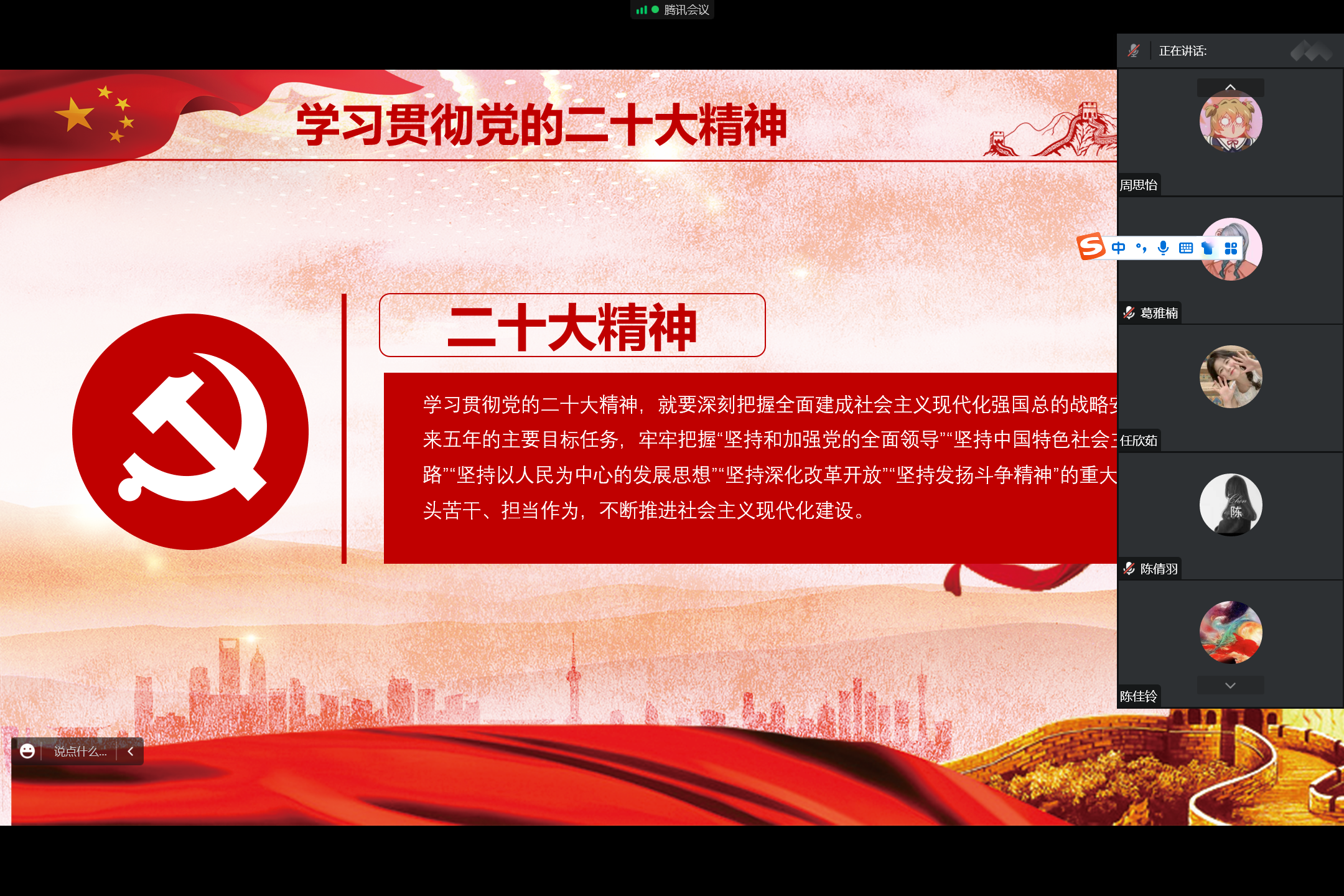 为深入学习宣传贯彻党的二十大精神,把青年学生的思想和行动统一到党的二十大精神上来,充分发挥生力军和突击队作用。金年会jinnianhuicom各团支部于11月29日至12月2日特别开展“学习二十大 永远跟党走 奋进新征程”线上政治学习活动,本次政治学习活动由金年会jinnianhuicom各班团支书主持,各支部全体同学参加。
