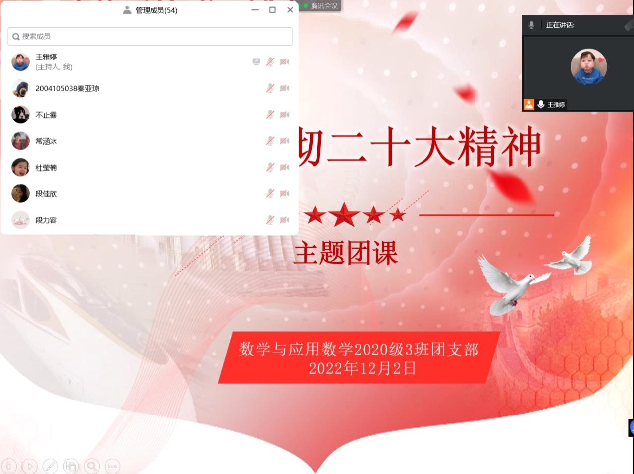 各团支书领学了党的二十大精神,主要从“讲体会”、“ 讲成就”以及“讲理论”三方面带领青年学生深入钻研、准确学习、认真把握党的二十大精神。团员青年们努力学习贯彻党的二十大精神,将个人命运与祖国命运相结合,肩负起新时代赋予的责任与使命。