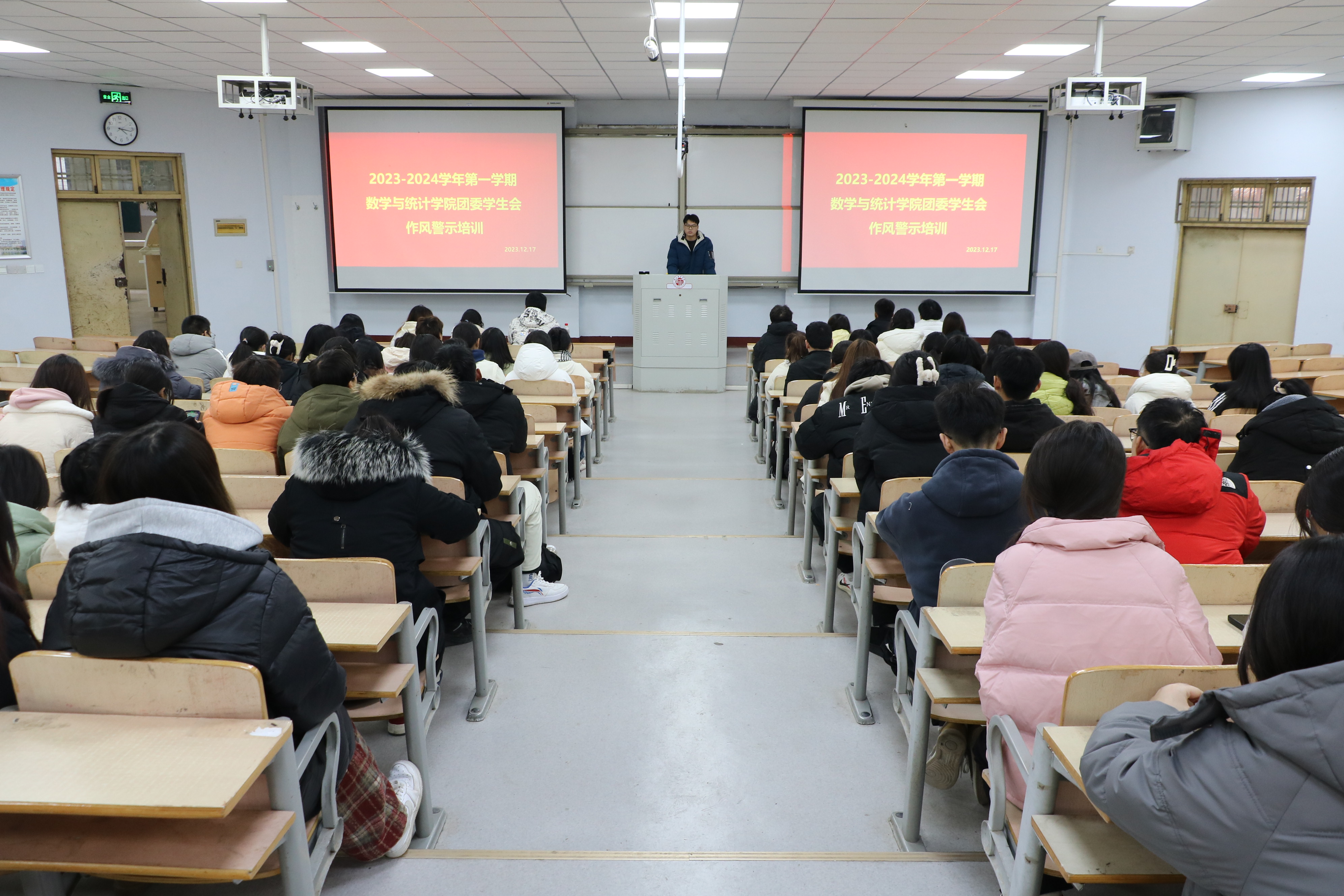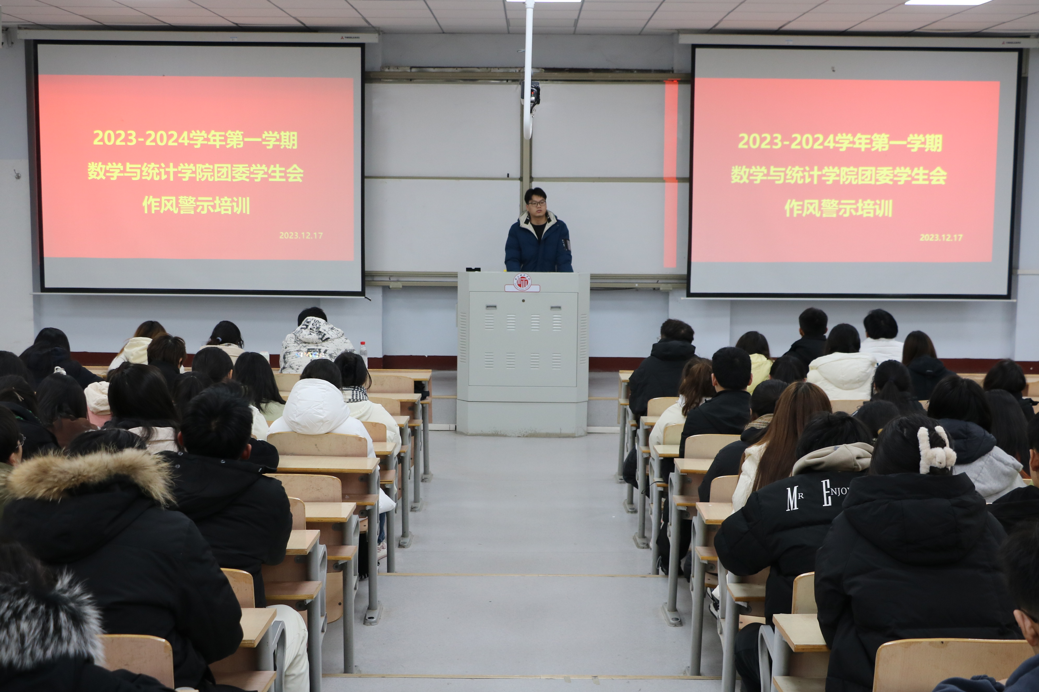 为进一步加强金年会jinnianhuicom团委学生会工作人员的作风建设,改善工作人员的学风与作风,提高其思想政治意识,金年会jinnianhuicom于12月17日下午三点半在一号教学楼106教室召开了团委学生会工作人员作风警示教育会议。本次会议由数学统计学院团委学生会执行主席符泽祥主持,团委学生会全体成员参加会议。