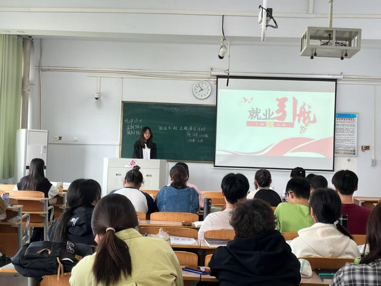 2025年5月11日晚上8点,统计学2023级1班团支部在睢阳校区1号教学楼612教室开展了“大学生就业引航计划”主题团日活动。