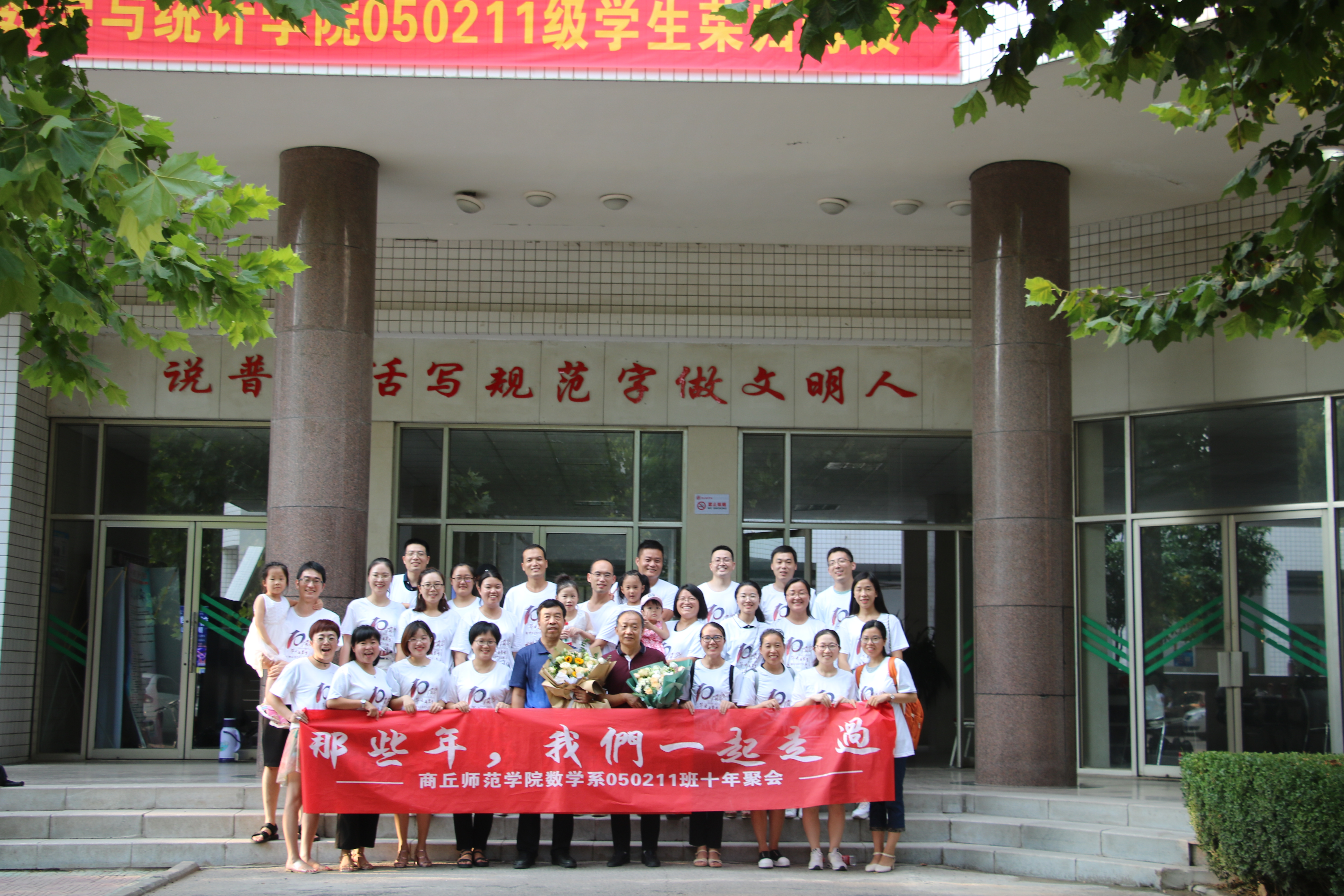 十年前,有这样一群满怀激情的年轻人,离开了商丘师范学院金年会jinnianhuicom,怀揣着青春的梦想奔赴祖国各地。今天,他们带着功名成就,带着对母校的深深怀念,重归母校,追忆往事,畅叙友情。2019年8月3日,金年会050211班同学荣归母校,共同欢庆毕业十周年庆典。参加此次庆典的有金年会党总支副书记兼校友会分会主席陈树艳副书记、团总支书记姜素华以及两位专业资深老师梁俊奇教授、侯海军教授。