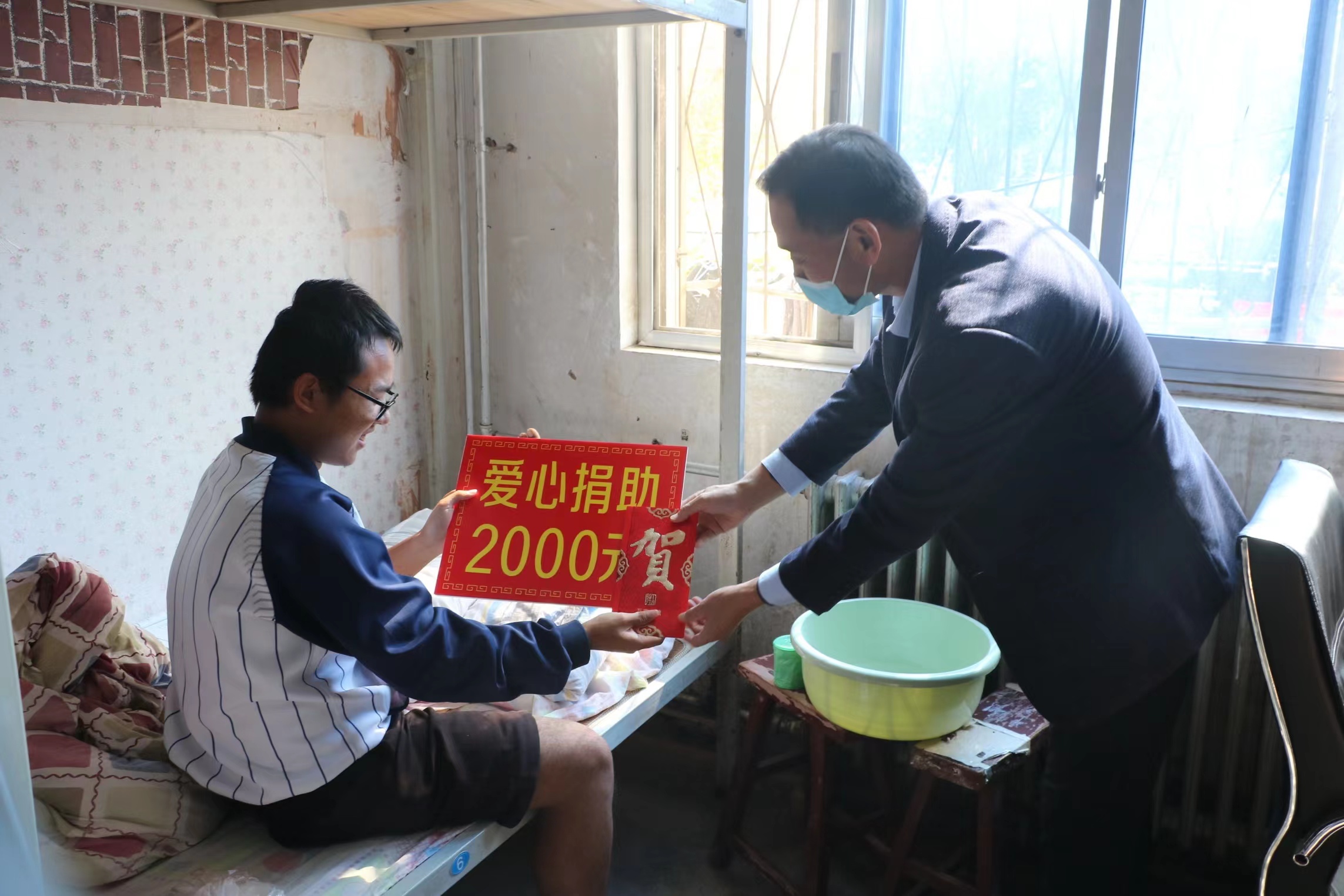 此次走访慰问的学生是一名2022级贫困生,该生在国庆假期期间腿部意外受伤导致无法行走,目前在宿舍养伤。金年会jinnianhuicom领导老师十分关心学生的身心健康,前往学生宿舍详细询问了该同学的受伤情况和治疗情况,并为他送去了牛奶、面包等慰问品。张斐然院长叮嘱受伤学生注意休息,谨遵医嘱,鼓励他继续保持积极乐观的心态,祝早日恢复健康。党委书记孟学超向学生送上了爱心人士的捐助,并叮嘱学生在学习和生活等方面存在任何困难都可以跟辅导员或者学院反映,学院领导老师一定会尽全力帮其解决问题,学院永远是他坚强的后盾。