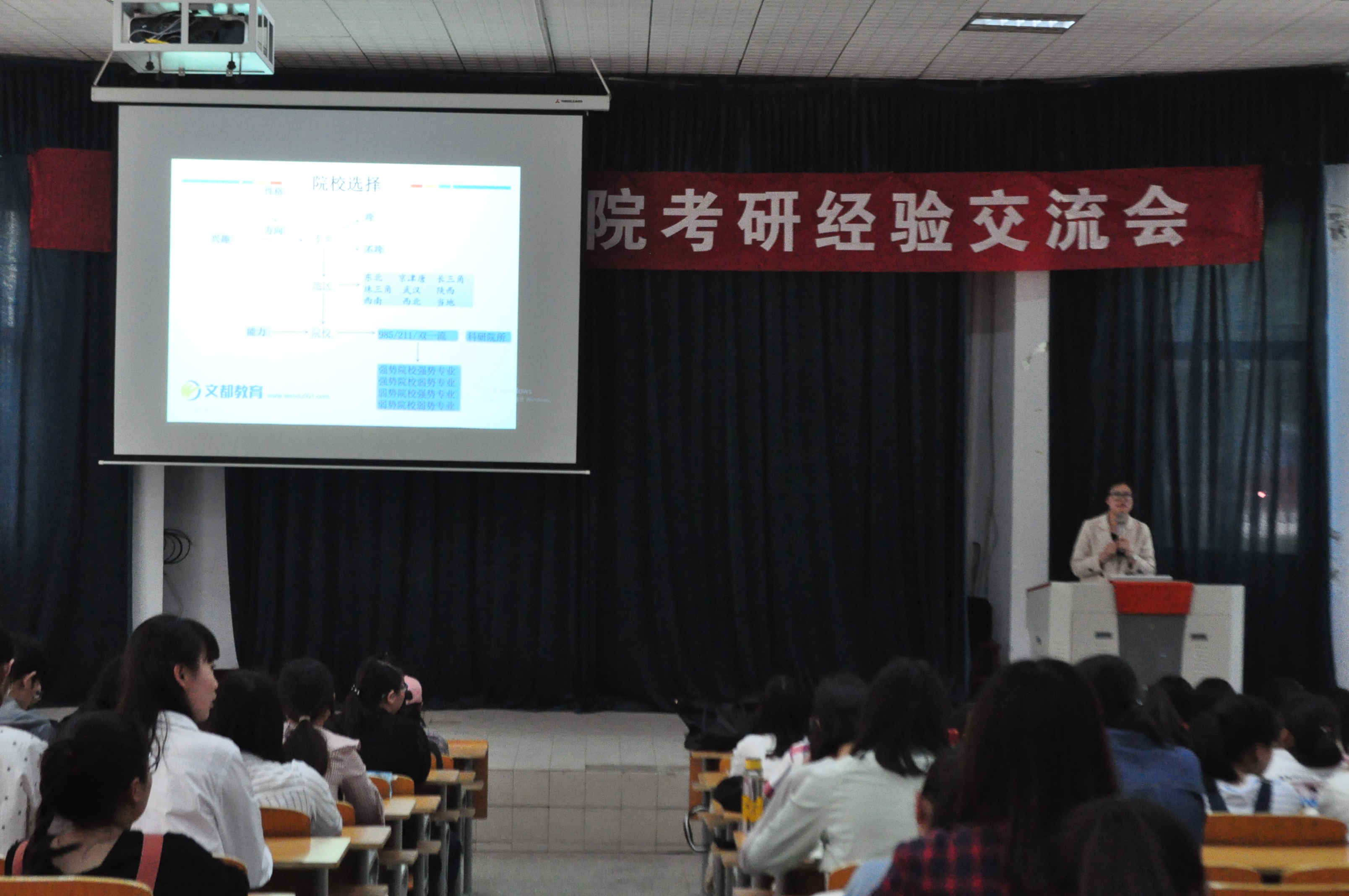 然后,学长学姐给同学们分享了考研心得和经验。14级应用数学专业的唐艳艳同学讲述了自己的考研之路,特别提到了考研艰辛历程中遇到的朋友,谓之“研友”,给她以很大的精神鼓励。学长学姐告诫同学们一定要坚定初心,既然选择了考研,就要老老实实地学习。并对复习给出了建议:以专业课为主,大面积撒网。他们还提到,考研是一场硬仗,要注意劳逸结合,适当加强营养和锻炼。
