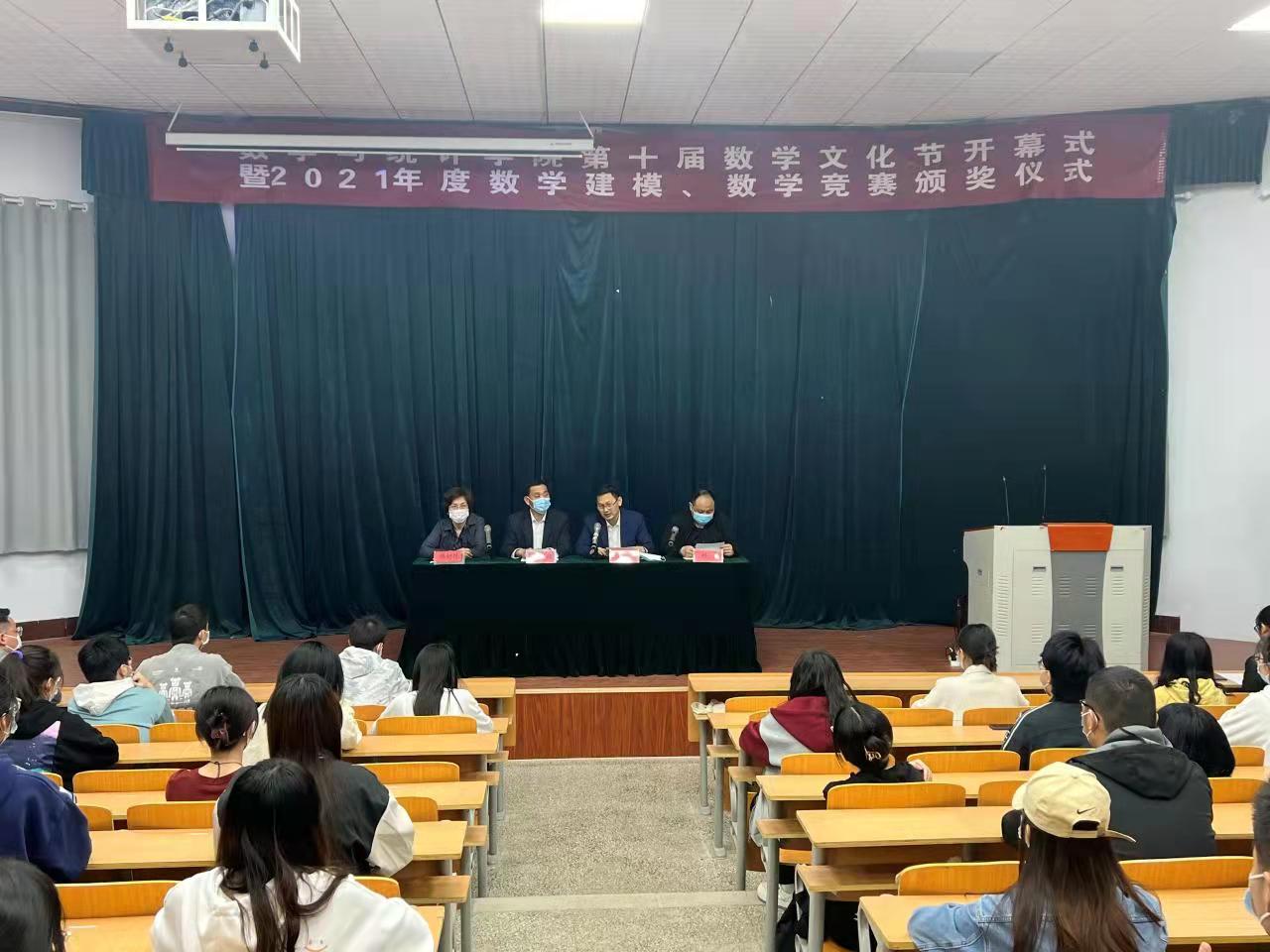 2022年5月1日,金年会jinnianhuicom第十届数学文化节开幕式暨2021年度数学建模、数学竞赛颁奖仪式在睢阳校区物理报告厅举行。学院党委书记孟学超、院长张斐然、党委副书记陈树艳、副院长刘磊及全体辅导员参加了本次活动。