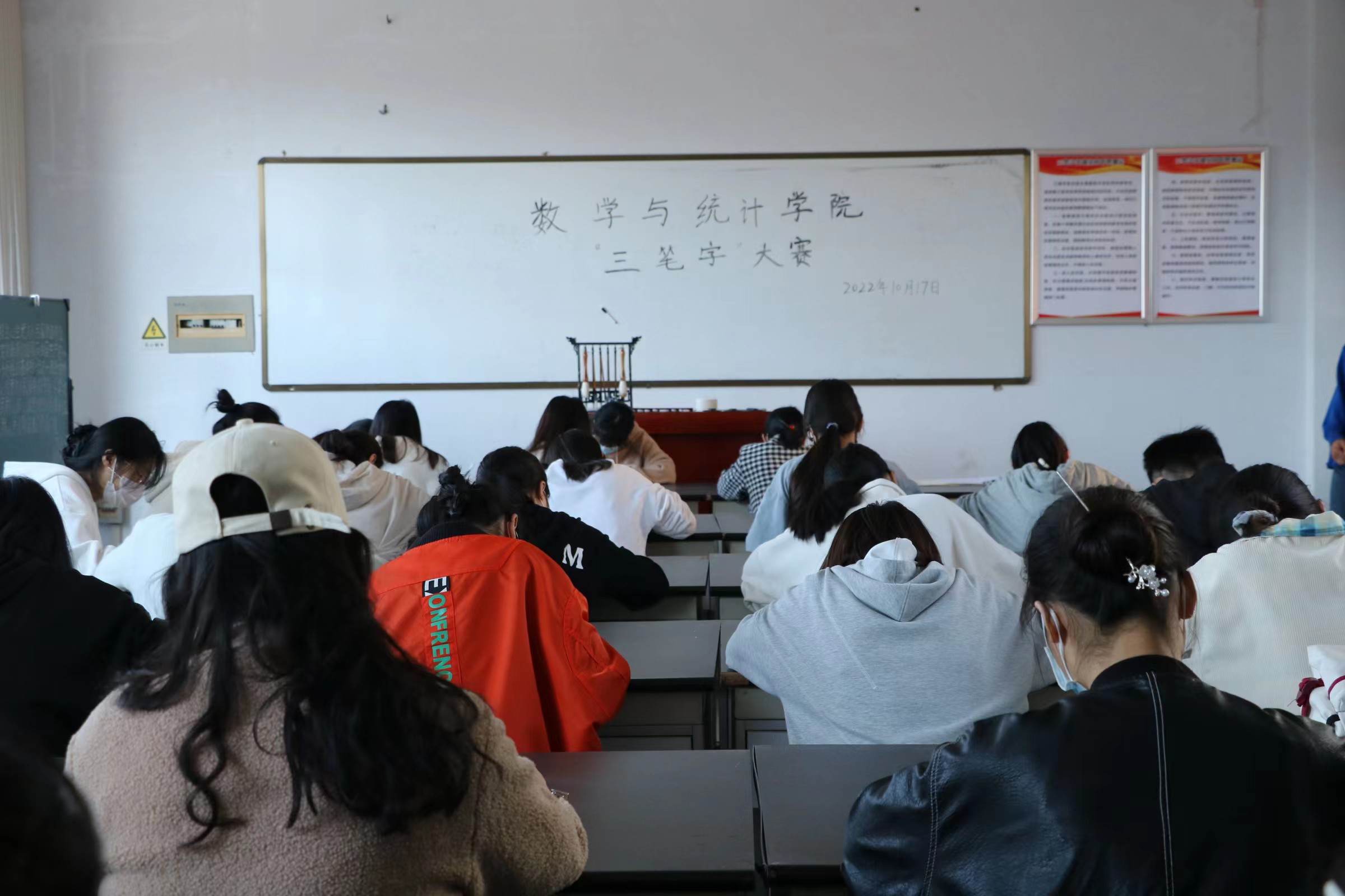为提高校园文化氛围,丰富学生的课外娱乐生活,进一步提升师范生的专业素养,金年会jinnianhuicom于10月14日至18日在办公楼310三笔字实训室举办了“三笔字”大赛。