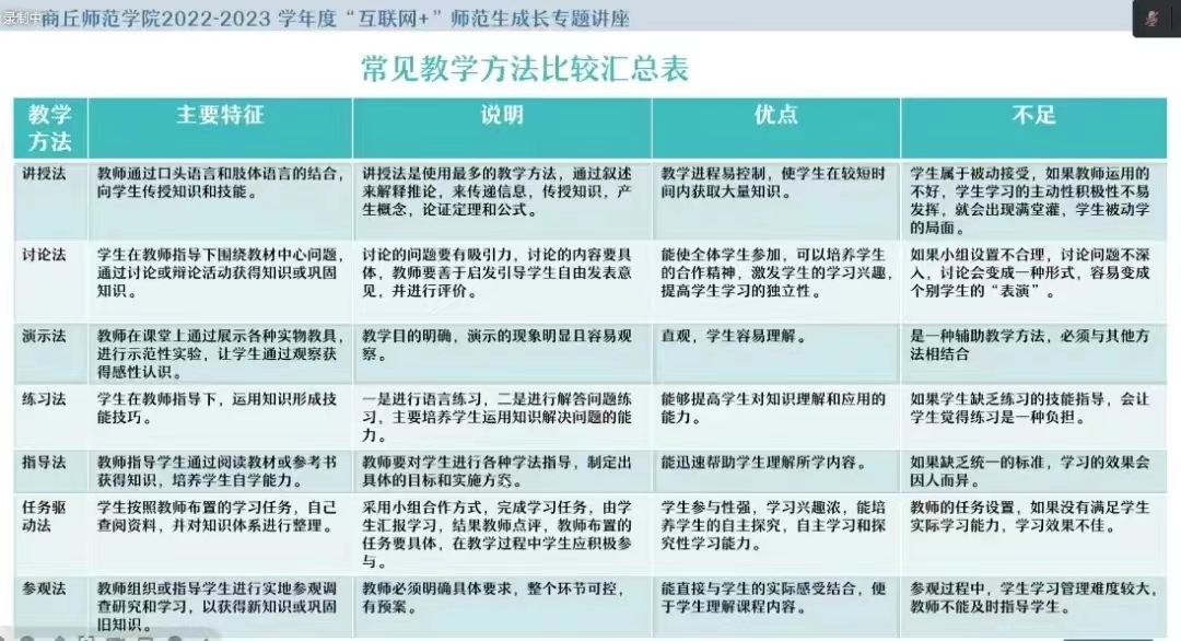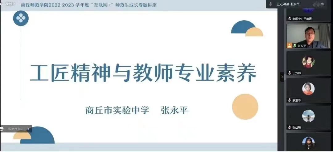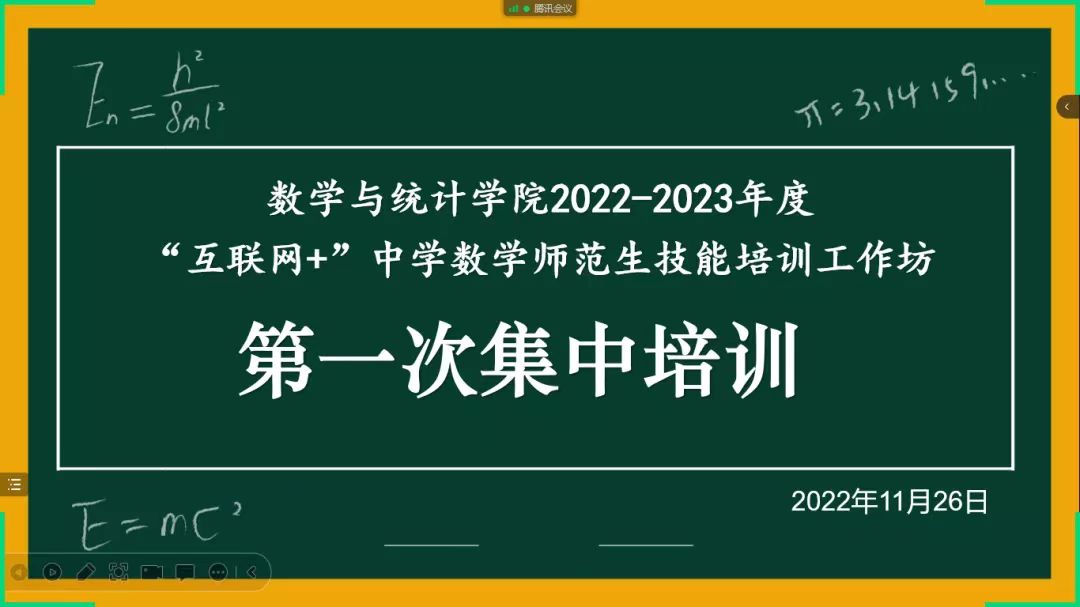 按照“互联网+”中学数学师范生技能培训工作坊的具体方案部署,金年会jinnianhuicom于11月26日晚七点在疼腾讯会开启了“互联网+”中学数学师范生技能培训工作坊第一次集中培训——师范生成长专题讲座。此次培训由商丘市实验中学张永平老师主讲,中学数学工作坊11位坊主,辅导员姜素华以及2020级111位师范生参加了此次集中培训。