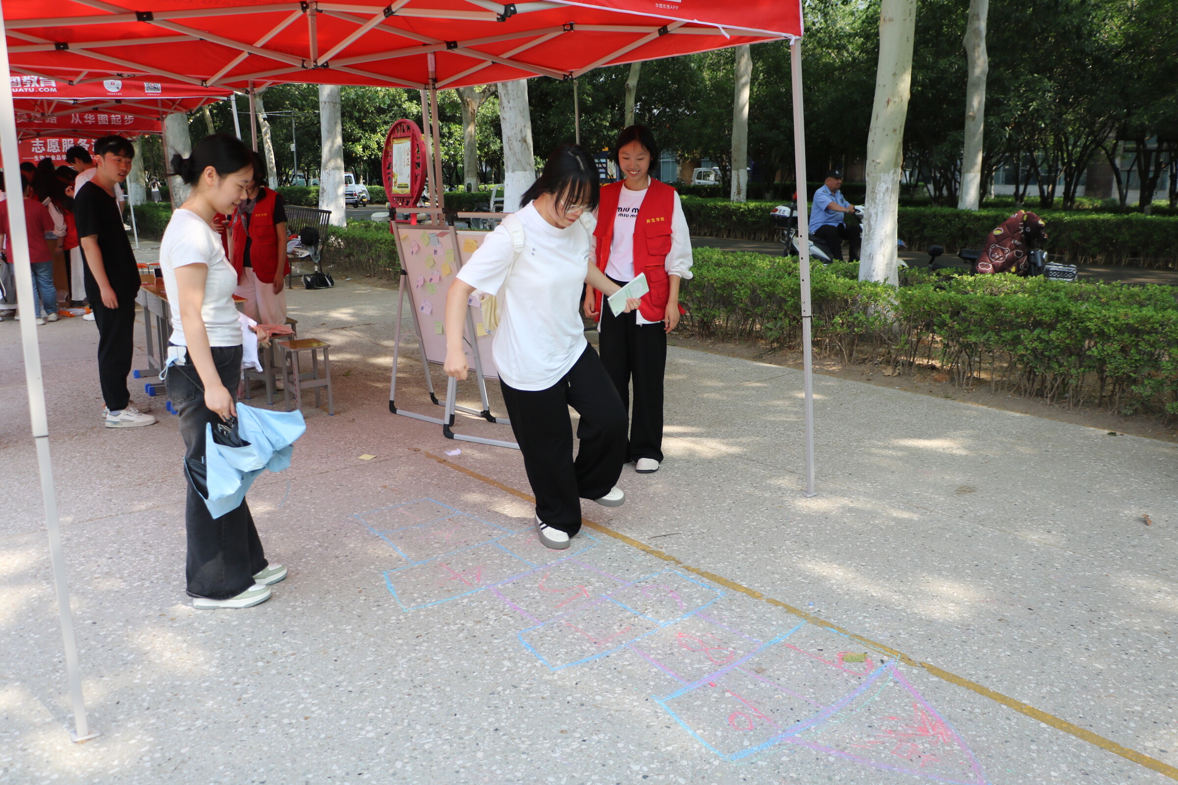 “质数跳房子”游戏同样精彩。工作人员用粉笔在地面画出标有1 - 10随机排列数字的跳房子格子,参与者需单脚跳踩质数格子。若踩错,就要创作一个方程情绪拼图。该游戏不仅锻炼了学生的身体协调能力,还激发了他们的创新思维。