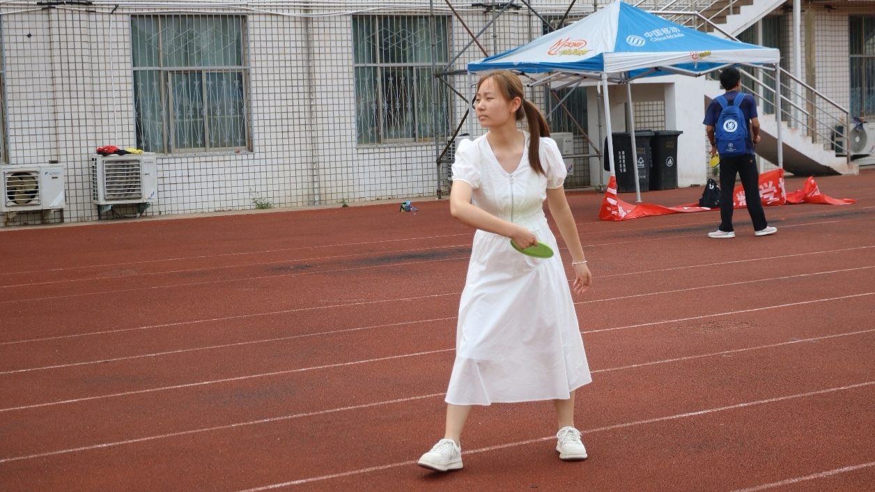 首先,活动以两人一组的分组竞赛形式展开。参赛选手需在扔飞盘和接飞盘的过程中,回答飞盘上贴着的数学问题。问题涵盖代数、几何、概率等多个领域,既考验了同学们的数学能力,又增添了运动的趣味性。比赛现场气氛热烈,同学们在奔跑与思考中展现出青春的活力与智慧的光芒。有的小组配合默契,接盘答题一气呵成;有的小组虽未得分,但依然乐在其中,充分体现了“友谊第一,比赛第二”的精神。