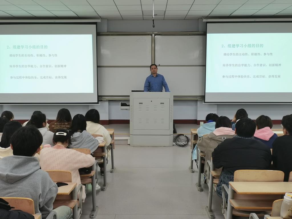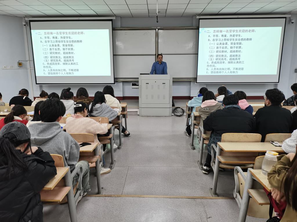 本次培训围绕“和悦”课堂的提出,学习小组建设的方法和重要性,以及新教师如何做好教育教学工作、打造和悦课堂三个方面展开。王学涛老师首先提出“和悦”课堂是在教学改革要求,向同学们介绍了“一核四层四翼”高考评价体系,并详细讲解了“和悦”课堂的概念、意义和目标,让同学们对“和悦”课堂有了更深的认识。随后,王学涛老师将学习小组比作高效学习的动车组,用生动的比喻让同学们了解什么是学习小组,同时讲述了组建学习小组的目的、意义和学习小组的特征,王老师分享陶行知先生曾提出过的教育“六大解放”,让同学们了解“和悦”课堂的重要性。接着,王老师就新教师如何做好教育教学工作这个话题,从三个方面进行讲述,即做一名好教师应具备的条件、怎样做一名受学生欢迎的老师和怎样做一名合格的教育工作者。王老师详细讲解认真备课、做好教学后记和优化教学内容的重要性,又介绍了如何设置复习课、检测课和讲评课三种课型的教学内容。最后,王老师结合自身从教17年的教学经验,深入浅出的讲解数学教育的教学方法,让同学们受益匪浅,收获满满。