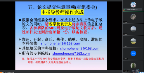会上,祁先飞博士详细讲解了赛前注意事项:一、赛前做好准备,全身心投入比赛;二、赛前联系好指导老师,做好比赛安排;三、了解比赛规则,不要粗心大意。祁先飞老师在会议上强调了资料上传、资料备份、论文格式规范以及比赛各时间段的安排等几个比赛中需要注意的地方,并举例了上一次参赛的同学出现过的问题,希望同学们引以为戒。此次会议帮助同学们充分了解比赛规则,并督促同学们做好赛前准备,树立好自信心,在比赛中取得好成绩。