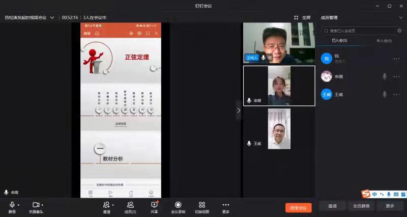 受疫情影响,为做好本次竞赛的准备工作,学院首先通过线上组织学生开展了参赛选拔工作,通过层层选拔,最终确定参赛选手为应数18-2班申薇同学。为了提升参赛选手的中学数学课堂教学实操能力,学院特邀商丘第一高级中学一线教学名师王威老师,协同金年会吕松涛老师对申薇同学进行联合培养。由于疫情期间学生不能返校,指导教师克服困难,采取腾讯会议的形式,多次线上对申薇同学进行教学指导。学生返校后,10月10日吕松涛老师和王威老师在睢阳校区1号教学楼110教室对参赛选手申薇进行了专项培训,从教学设计、课件制作、教学方法等方面对申薇所讲授的《正弦定理》进行指导并提出改进建议,帮助学生优化了讲课和说课内容。