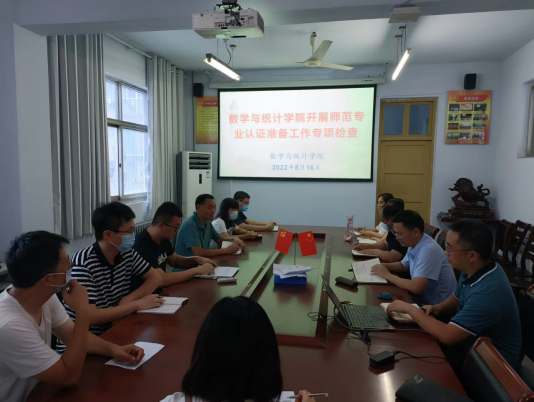 金年会jinnianhuicom为全面推进师范类专业认证工作,进一步强化认识、查找不足、积极整改,确保数学与应用数学专业能顺利通过认证,8月16日,院长张斐然主持师范专业工作组开展数学与应用数学专业认证准备工作专项检查,书记孟学超、副院长刘磊和九个小组组长参加专项检查工作。