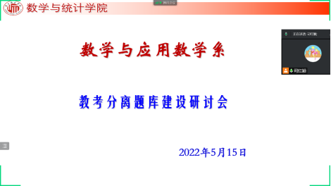为贯彻落实《商丘师范学院关于推进教考分离工作的实施方案》,进一步推进学校课程考核方式改革,构建科学有效、公平公正的多元化评价体系,全面提高人才培养质量。数学与应用数学系于5月15日举办了教考分离题库建设线上研讨会,系全体成员参加。