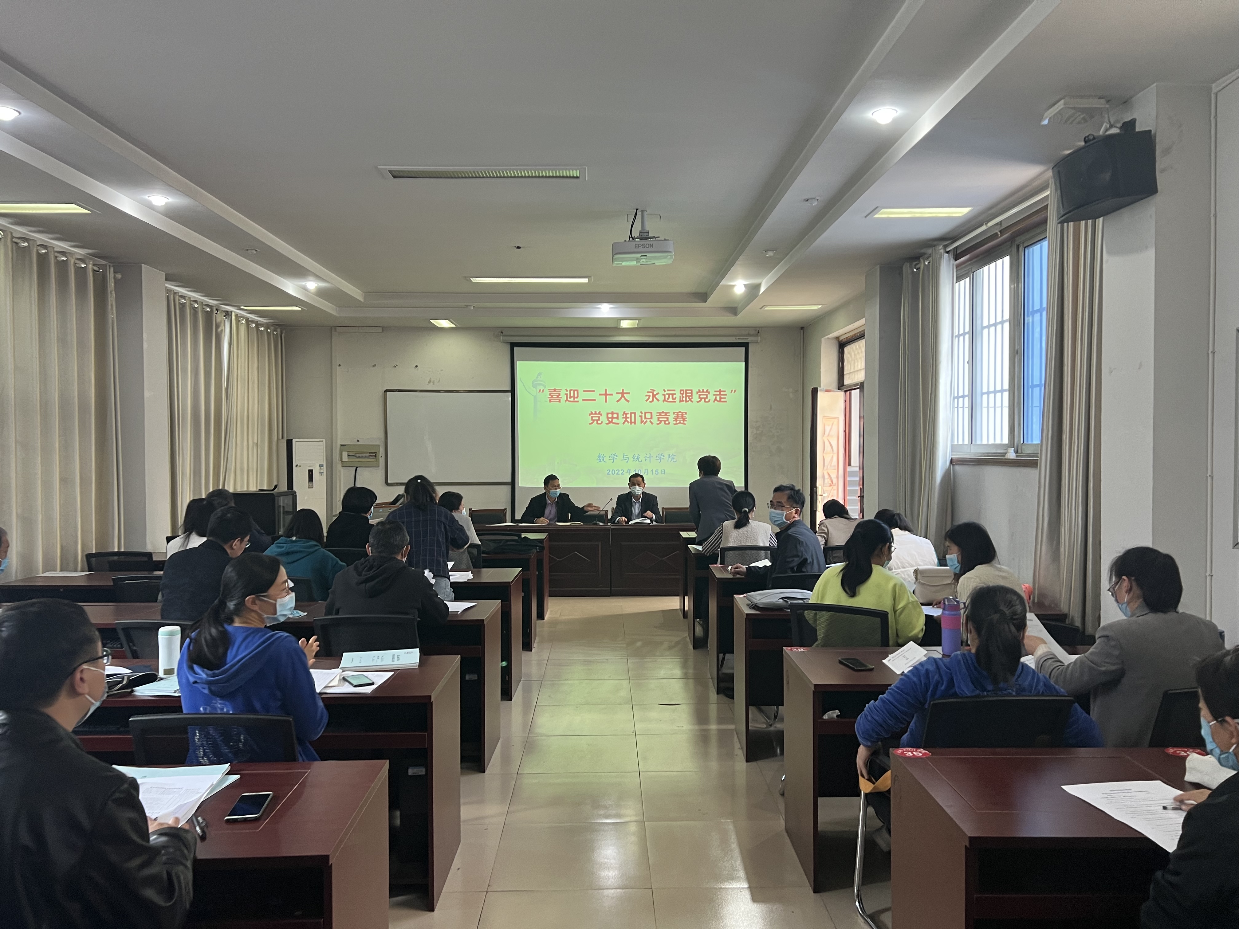 为迎接党的二十大胜利召开,引导广大教师学史明理、学史增信、学史崇德、学史力行,金年会jinnianhuicom于10月15日在办公楼208会议室面向全院教职工党员和入党积极分子开展“喜迎二十大,永远跟党走”党史知识竞赛。