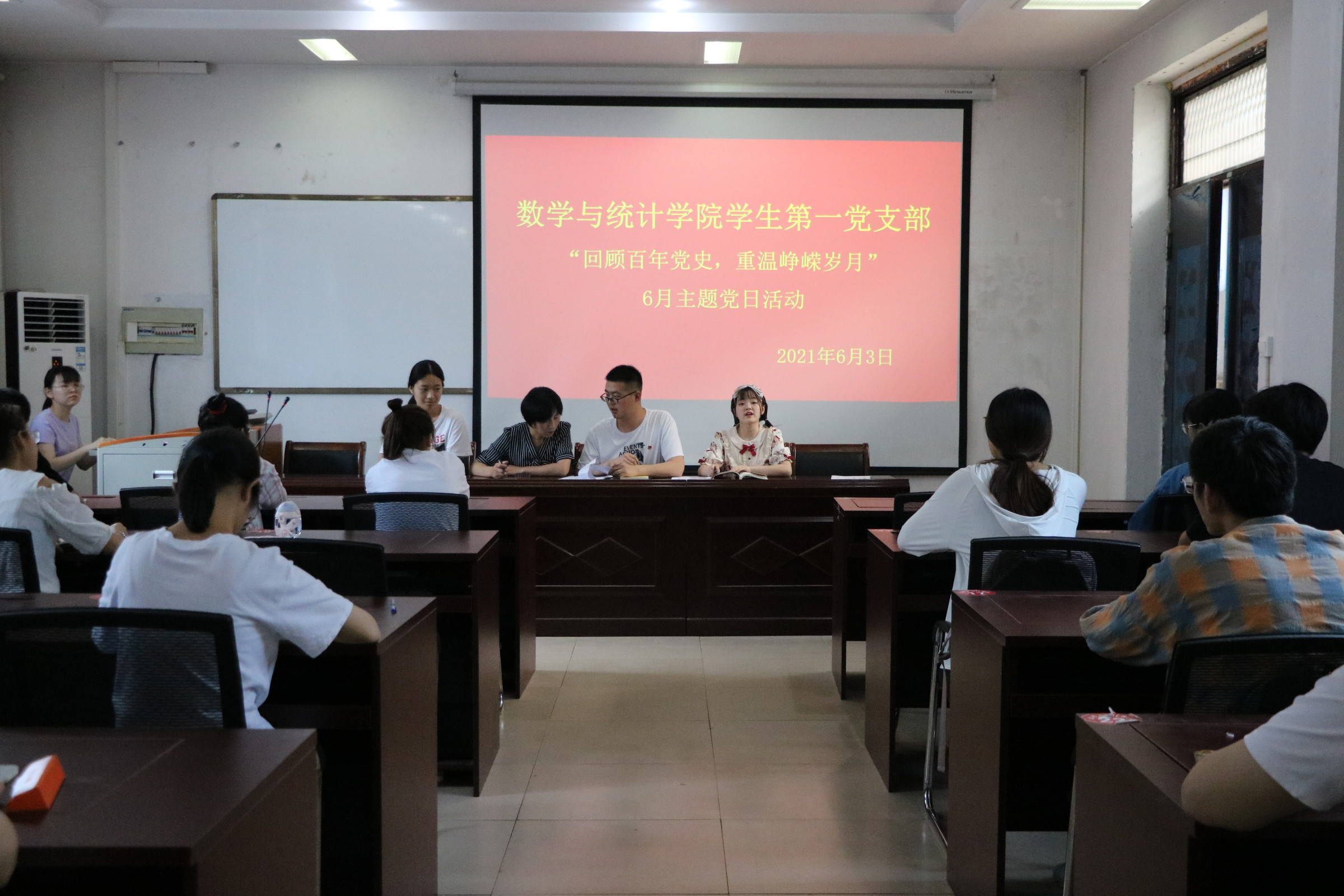 为了推进党史教育,弘扬红色革命精神,商丘师范学院金年会jinnianhuicom于2021年6月3日在数学办公楼208开展以“回顾百年党史,重温峥嵘岁月”为主题的党日活动。此次党日活动由第一党支部书记姜素华主持,金年会jinnianhuicom第一党支部全体党员参加。