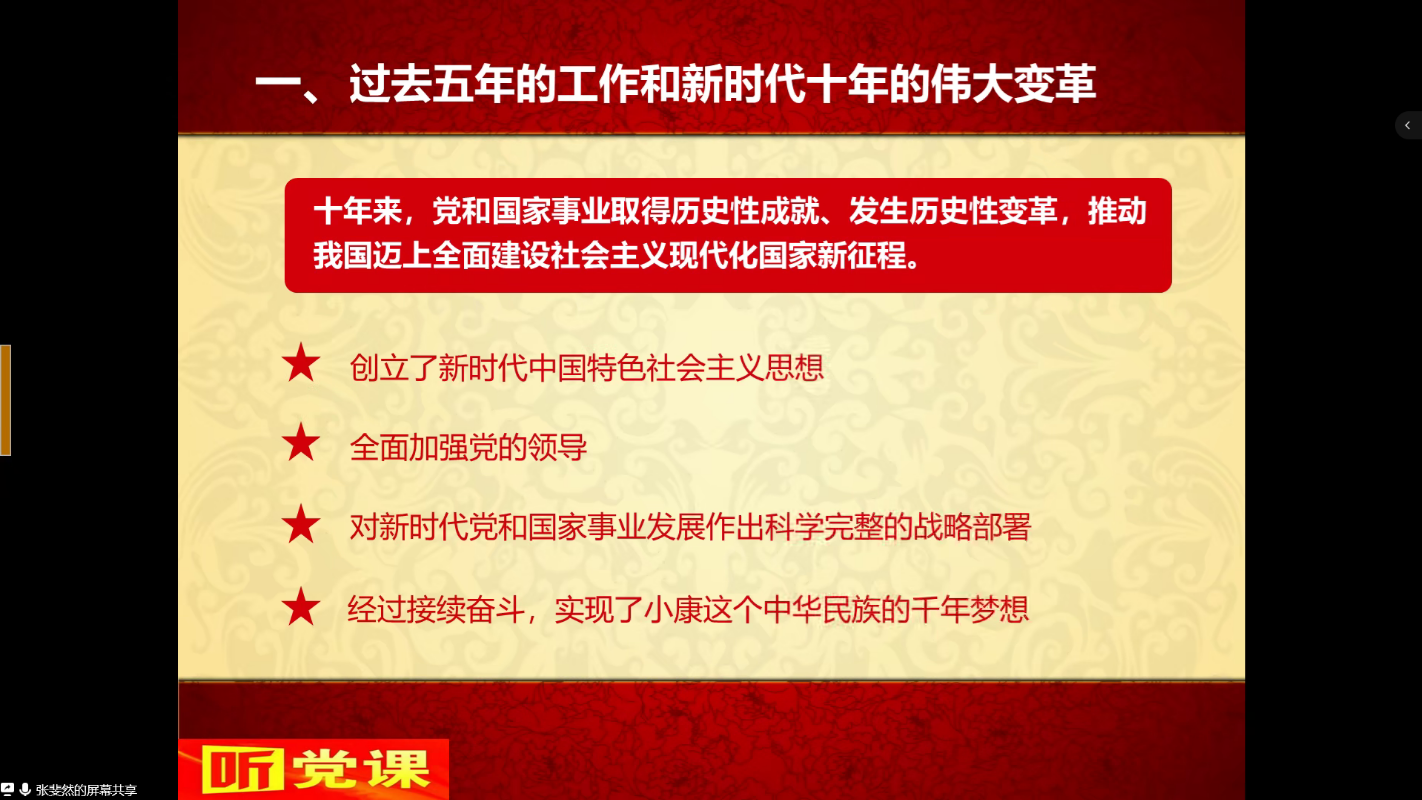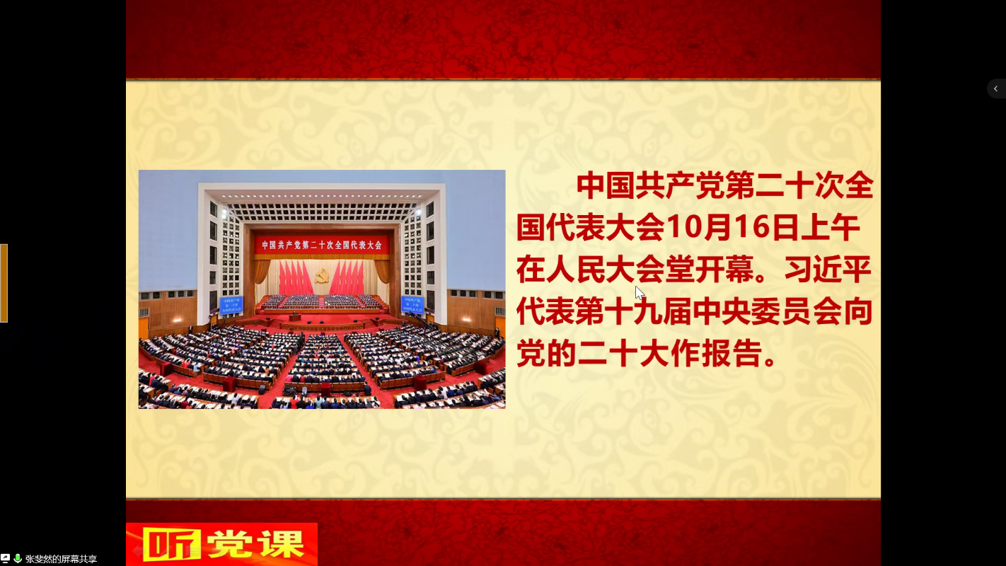 为深入学习宣传贯彻党的二十大精神,使学生切实把思想认识转化为实际行动,深入领会党的创新理论,做到坚定不移地听党话,跟党走。11月18日下午三点,金年会jinnianhuicom线上开展了“听党话跟党走——党的二十大报告要点解读”主题党课培训。本次党课由金年会jinnianhuicom院长张斐然主讲,全体中级入党积极分子参加。